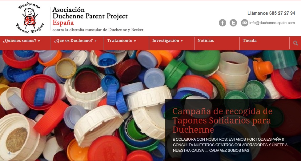 Tienen varios puntos de recogida en diferentes provincias: Andalucía, Aragón, Asturias, Canarias, Catalunya, Comunidad Valenciana, Galicia, Madrid y Mallorca. Localiza el más cercano, en su web: www.duchenne-spain.org/centros-colaboradores-con-la-recogida-de-tapones-solidarios-para-duchenne/